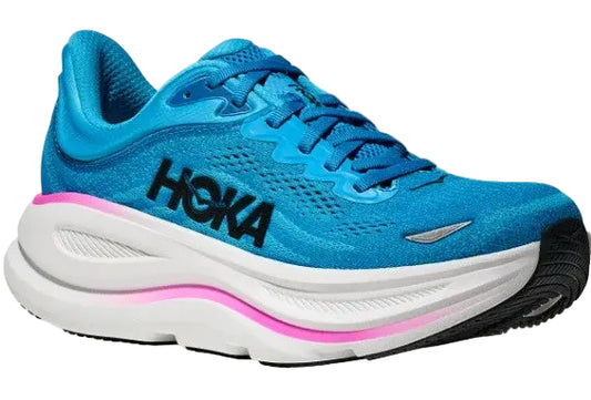 Womens Bondi 9 Running Shoes, Skyward Blue/Neon Fuchsia